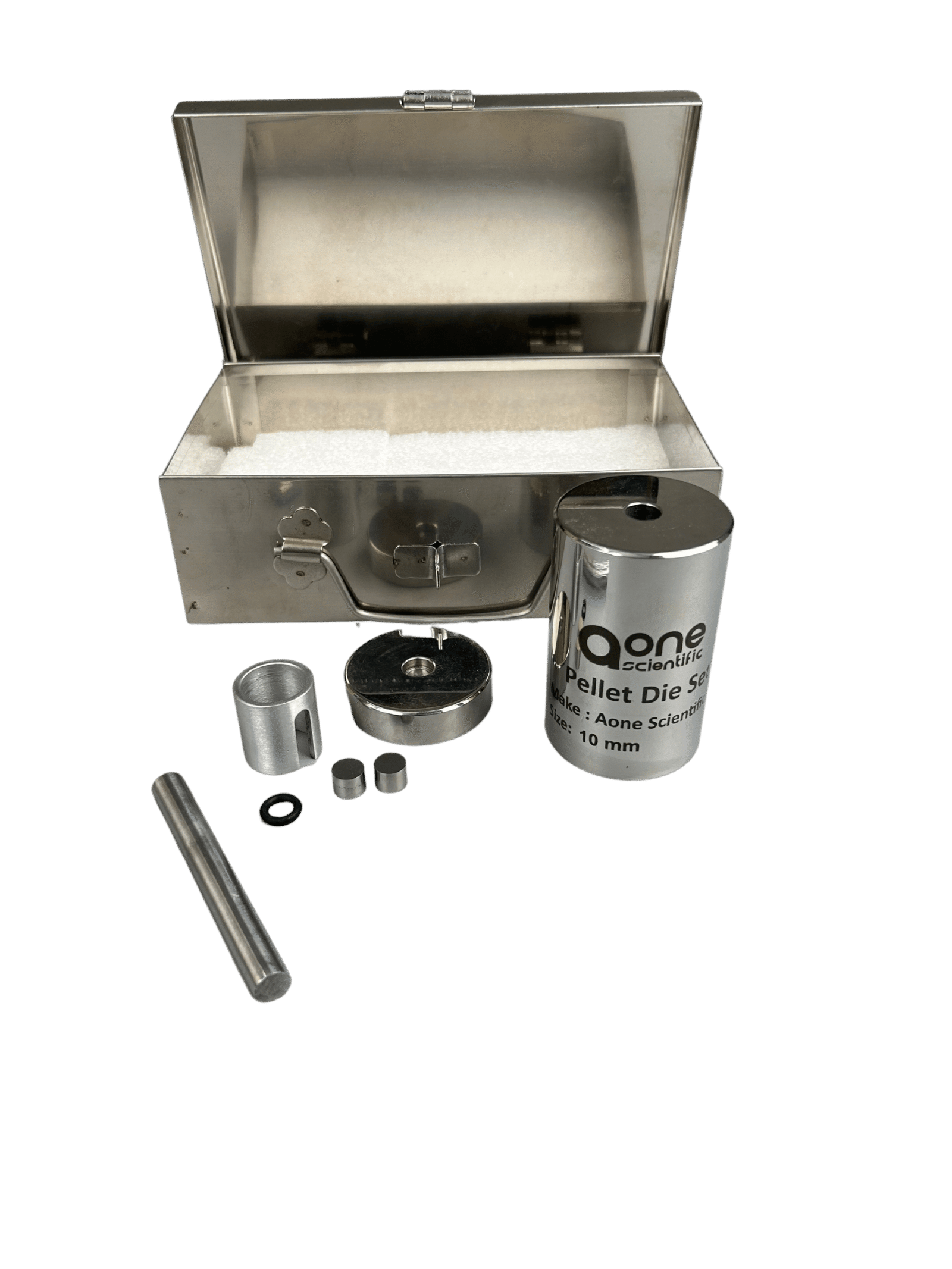 A 10 mm Pellet Press Die Set is used in laboratories and industrial settings to compress powders or granular materials into uniform pellets. The set is typically used in conjunction with a pellet press, which applies a specific amount of pressure to form the powder into solid, uniform discs, usually for applications like X-ray diffraction (XRD), infrared spectroscopy (IR), or other material characterization methods. The 10 mm size refers to the diameter of the pellets that are produced by the die set.